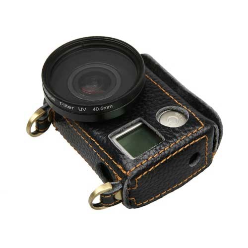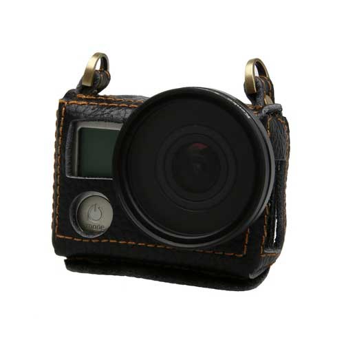 Een beschermende cameratas met nekriem voor GoPro HERO4. Het ontwerp is gemaakt van echt duurzaam rundleer met externe stiksels en praktische, mooie details.