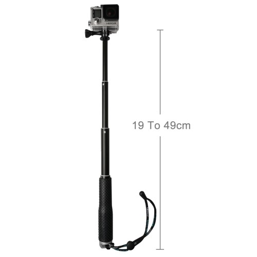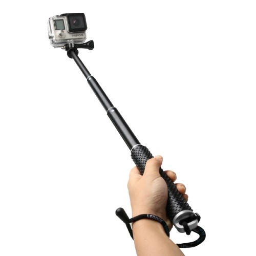 De stok is eenvoudig in gebruik en de camera is eenvoudig zonder gereedschap aan en uit te doen. De polsband beveiligt uw camera als u de paal laat vallen.