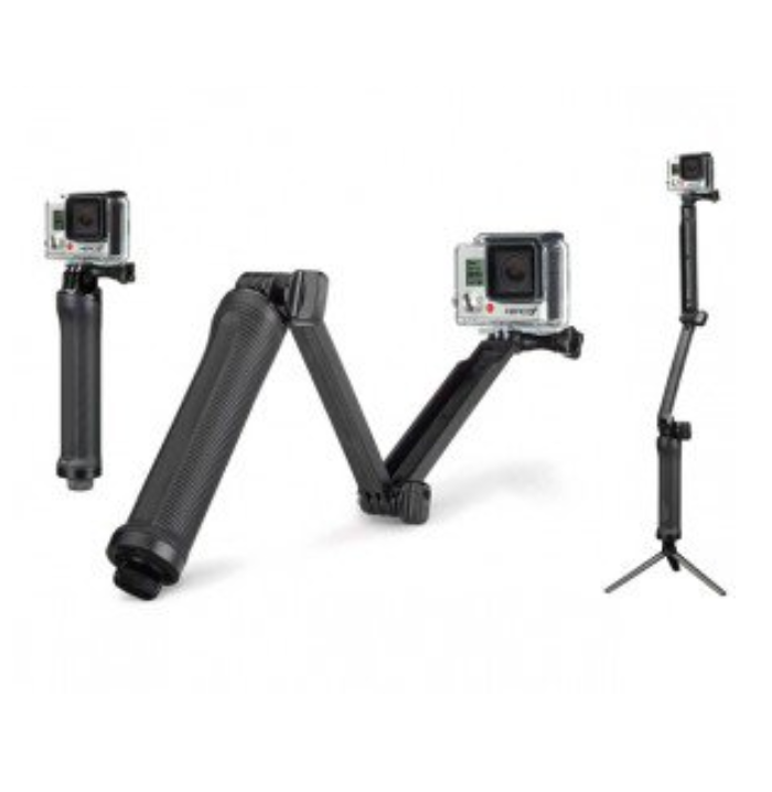 - Vouw hem op en je hebt een praktisch en comfortabel handvat voor je GoPro camera. Het handvat is ook antislip, zodat hij niet van je afglijdt.