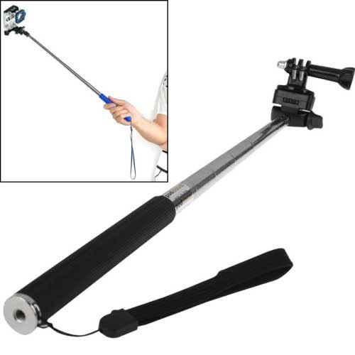 Een mooie selfiestick met houder en schroef voor alle GoPro HERO-camera's en voor andere actiecamera's met een 14"-schroefdraad. Deze selfiestick heeft een telescopische verlenging van 20 tot 97 cm, wat je een Stor flexibiliteit geeft om supergoede en verschillende hoeken vast te leggen Het handvat is van extreem comfortabel gegroefd rubber dat je een stevige grip geeft en je kunt lang fotograferen en de scherpste foto's maken.Een lichtgewicht ontwerp om mee te nemen op vakantie of voor sportactiviteiten, je zult altijd in staat zijn om vast te leggen de leuke en unieke momenten met je GoPro. Je kunt ook je smartphone gebruiken met deze selfiestick. Hiervoor heb je wel een mobiele adapter nodig (niet inbegrepen). Een polsbandje wordt meegeleverd voor veilig gebruik.