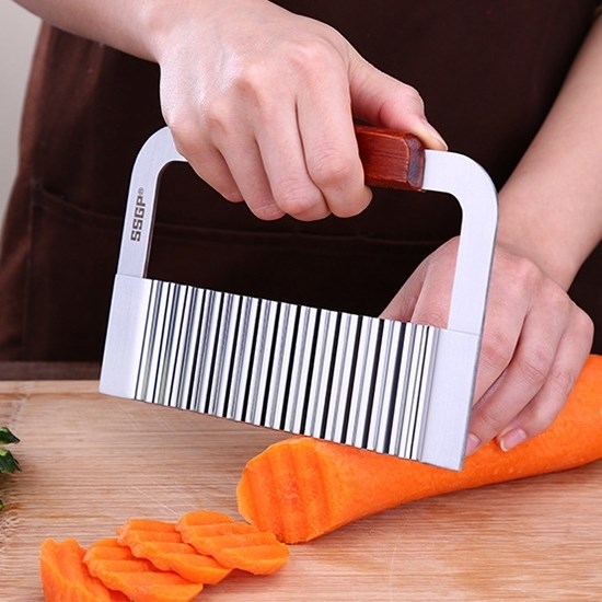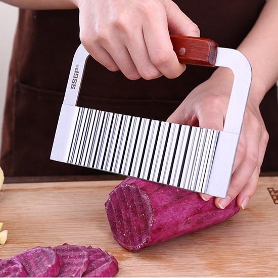 Met dit slimme groentemes snij je aardappelen, wortelen en andere groenten in mooie plakken met golvende groeven.