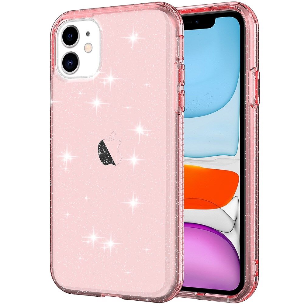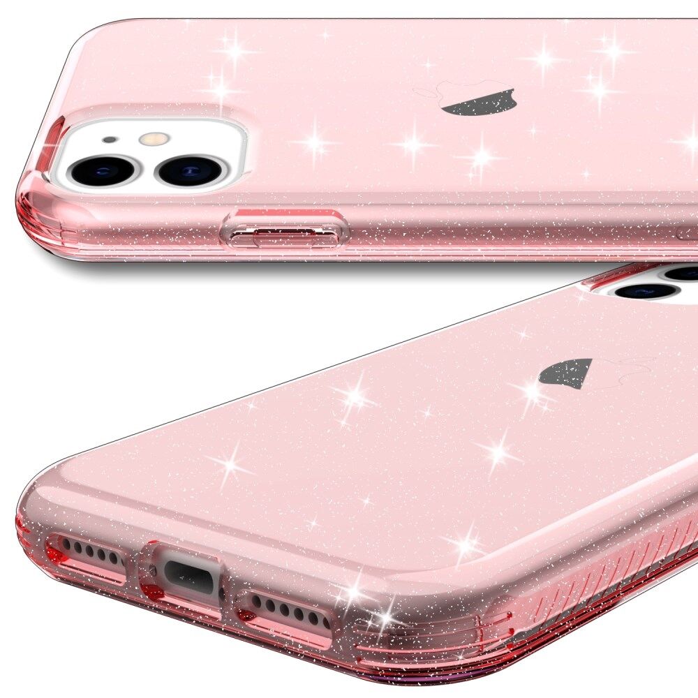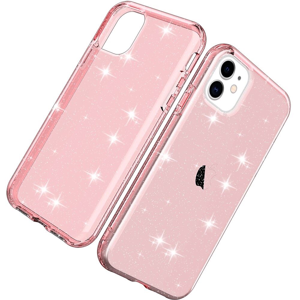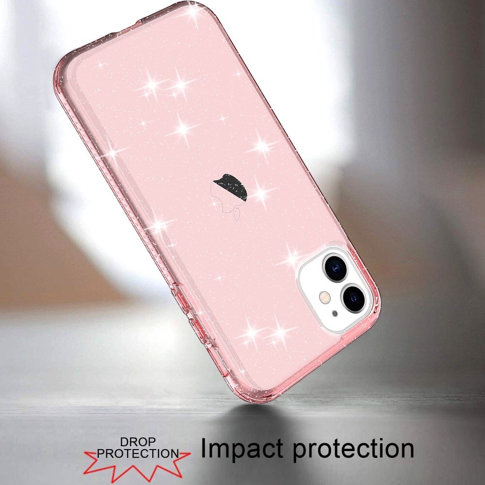GW18 Clear Glitter Sparkly Light Anti-Drop Shockproof Soft TPU Case voor iPhone 11 6.1 inch - Transparant Roze