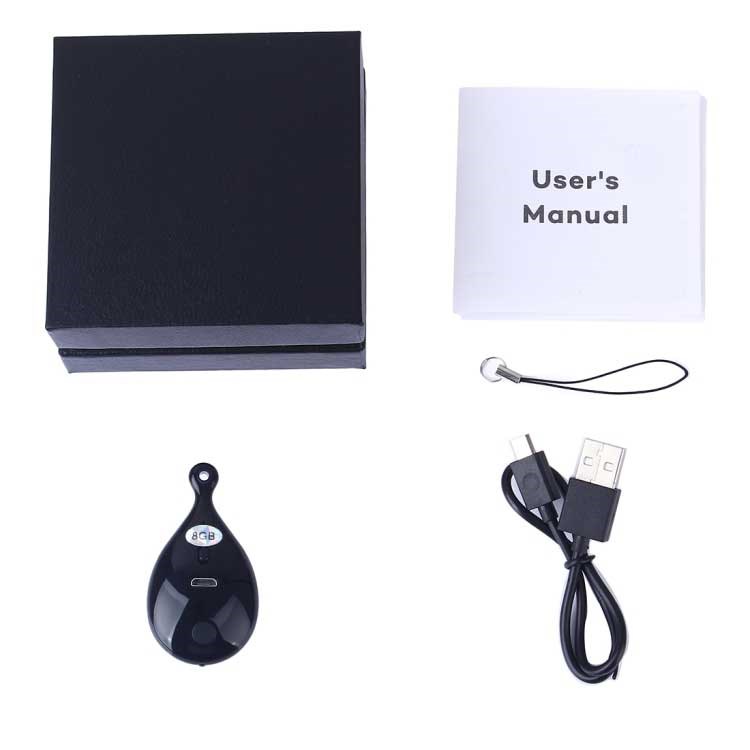 Een elegant ontwerp gecamoufleerd in een hanger met een ingebouwde microfoon, die ook discrete geluidsopnames mogelijk maakt.