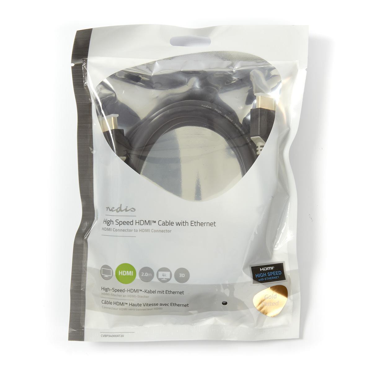High Speed ​​HDMI™-kabel met Ethernet | HDMI™-aansluiting | HDMI™-aansluiting | 4K@60Hz | 18 Gbps | 2.00 meter | Ronde | Pvc | Antraciet | Plastieken zak