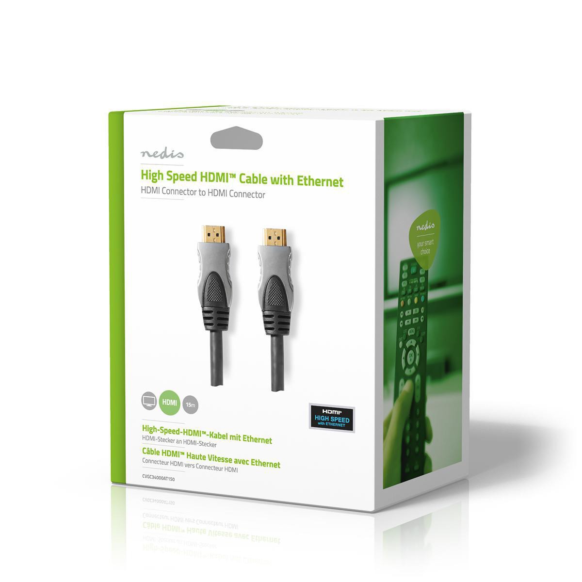 High Speed ​​HDMI™-kabel met Ethernet | HDMI™-connector | HDMI™-connector | 4K@60Hz | 10,2 Gbps | 15,0 meter | Ronde | Pvc | Zwart | Plastic doos