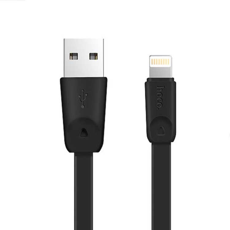 Hoco Noodle Lightning-gegevens / synchronisatie. Kabel - Zwart - 1 meter
