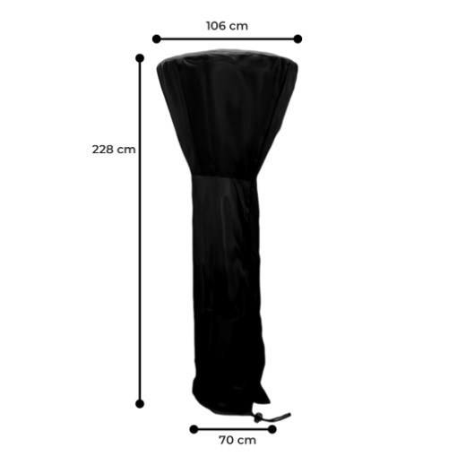 De hoes meet 226 x 85 x 48 cm en kan een eenvoudige terrasverwarmer afdekken.