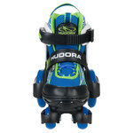 HUDORA 'My First Quad' rolschaatsen voor het eerste rijplezier op acht wielen. Deze rolschaatsen zijn speciaal gemaakt voor kleine gebruikers. De skates hebben een met nylon versterkt chassis, gegoten PU-wielen, push-lock gespen en geïntegreerde stops op beide schoenen. Deze rolschaats is in maat verstelbaar en groeit tot 4 maten (26 - 29) mee met je kind. De extra grote achterwielen maken de schoen tot een echte eyecatcher. De voering kan worden verwijderd en gereinigd. De schoenen zijn geschikt voor kinderen tot 20 kg.
