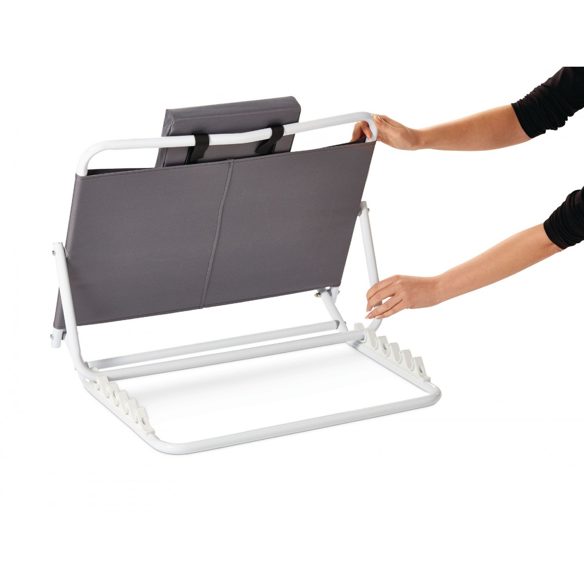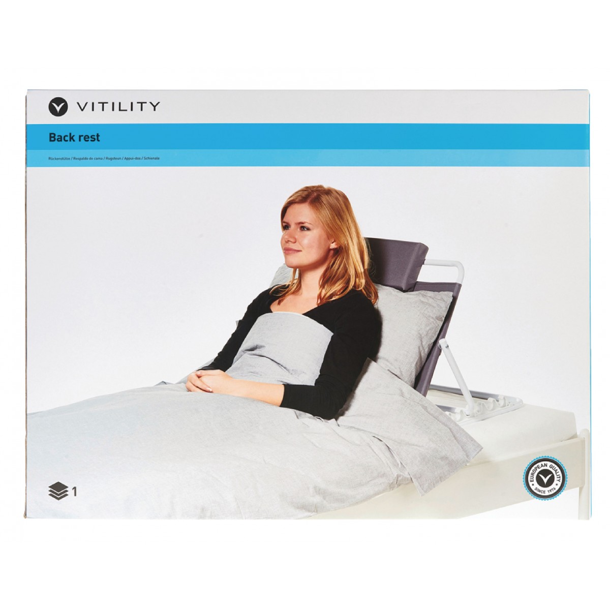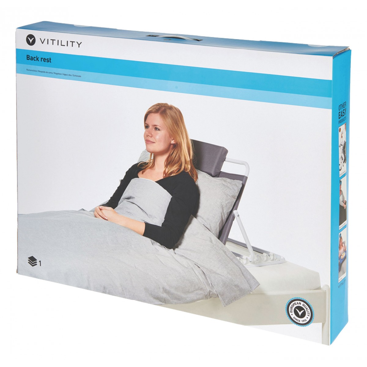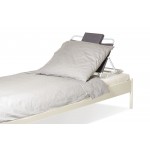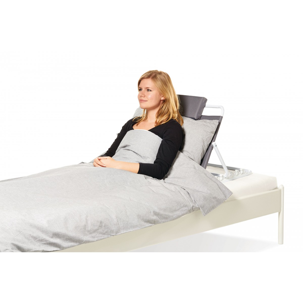 De rugleuning kan in elk bed worden geplaatst. Door de rugleuning kunt u rechtop in bed zitten. De rugleuning kan op vijf verschillende hoogtes worden ingesteld. De rugleuning kan volledig plat worden geklapt, waardoor hij makkelijk op te bergen is, bijvoorbeeld onder het bed.