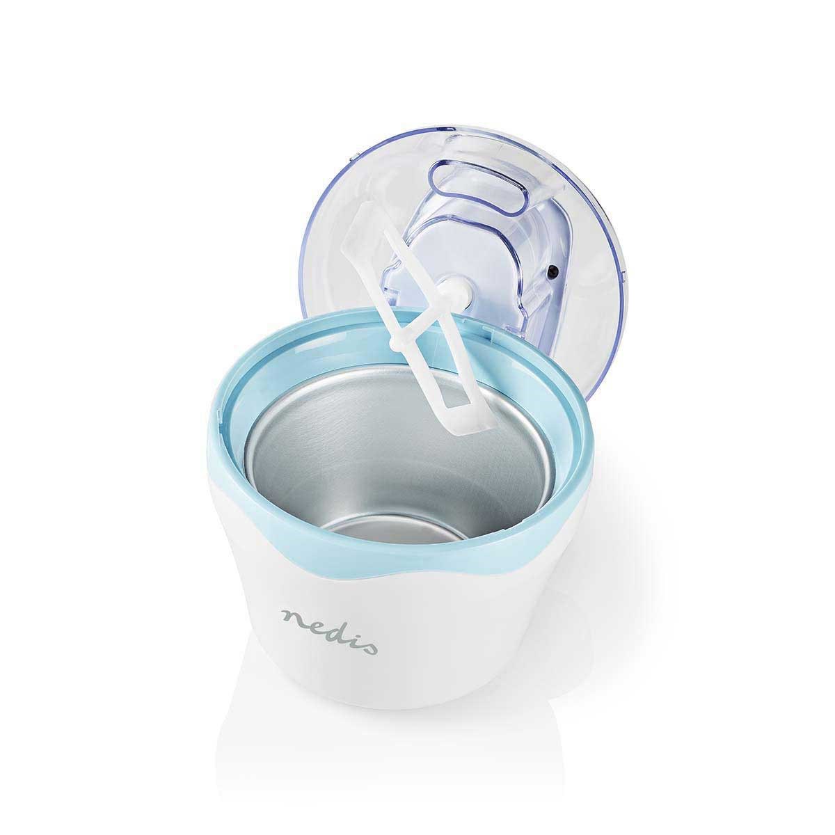 De machine is voorzien van een transparant deksel met vulopening. De diepvrieskom levert kant-en-klaar ijs binnen 20-40 minuten.