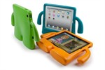 iMuzzy iPad-houder. Een uniek ontwerp met handgrepen gemaakt van duurzaam dik schokabsorberend massief schuimmateriaal voor effectieve bescherming van iPad 1/2/3/4 tegen krassen en stoten.