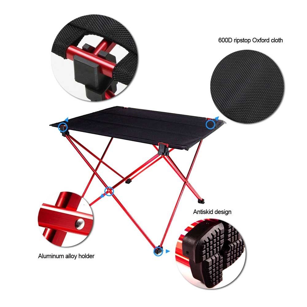 Een sterke en stabiele klaptafel voor op het festival, op de picknick of op de camping. Een buitendesign van aluminium en sterk waterafstotend nylon materiaal met afgeronde tafelhoeken. Onder de poten is antislip materiaal aangebracht wat zorgt voor stabiliteit wanneer de tafel op een gladde ondergrond wordt geplaatst. De ultralichte tafel weegt slechts 750 gram, waardoor hij ideaal is om mee te nemen in je tas. Allemaal door een fantastische klaptafel voor buitenactiviteiten zoals festival, kamperen, wandelen en picknicken.