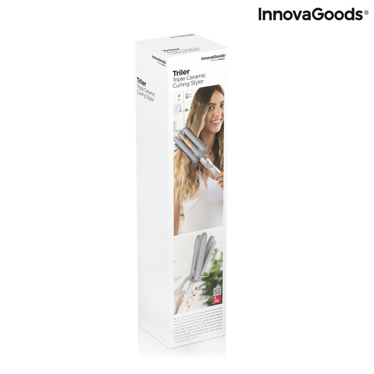 Krultang voor styling InnovaGoods maakt het je gemakkelijk om prioriteit te geven aan je persoonlijke verzorging zonder excuses, want je vindt de beste en nieuwste nieuwe beauty-, ontspannings- en wellnessartikelen! [b]] Drievoudige keramische gietkrulmachine Triler InnovaGoods is hier een goed voorbeeld van! Bekijk de grote selectie van hoogwaardige producten die opvallen door hun functionaliteit, efficiëntie en innovatief design. Een keramische krultang met een innovatief ontwerp met drie staven, perfect om je haar met totaal gemak en comfort te golven, voor een optimaal en professioneel resultaat. Maak grote en dikke golven, min of meer gemarkeerd en gedefinieerd, voor een speciale gelegenheid of voor een natuurlijke alledaagse look. De ideale oplossing om je uiterlijk te veranderen zonder naar de kapper te hoeven, wat tijd en geld bespaart. Het ontwerp is ergonomisch en heeft een anti-onvolwassen houder. Het heeft 2 temperatuurniveaus om zich aan te passen aan alle haartypes. PTC-technologie zorgt voor snelle verwarming (ongeveer 1 min.) En verhoogt de duurzaamheid. De drie staven met keramische coating zorgen voor een totale bescherming van het haar en een homogene warmteverdeling bij constante temperatuur. De roterende 360º-kabel vergemakkelijkt het gebruik en de mobiliteit. Het wikkelt of beschadigt het haar niet en is zeer gemakkelijk te gebruiken. Specificaties: - Materiaal: - BUIKSPIEREN - PTC - Aluminium - Kleur: - Grijs - Wit - Ontwerp: innovatief en functioneel - Type: Elektrisch - Ergonomisch: bescherming tegen brandwonden - Triple bar styler: grote, dikke golven Staven met keramische coating: 3D - PTC-technologie: snelle verwarming - Ca. opwarmtijd: 60 s - Temperatuurniveau: 180 C / 210 ºC - Geschikt voor alle haartypes: klit of beschadig het haar niet - Eenvoudig in gebruik: praktisch, gemakkelijk en veilig in gebruik - Kabel 360º draaibaar: 360º draaibaar - Kabellengte: 160 cm - Stekkertype: C - Vermogen: 100 W - AC-ingang: 220-240 V / 50-60 Hz - Ca. afmetingen: 10,5 x 33 x 7,8 cm Verpakking en handleiding in 24 talen: Engels, Frans, Spaans, Duits, Italiaans, Portugees, Nederlands, Pools, Hongaars, Roemeens, Deens, Zweeds, Fins, Litouws, Noors, Sloveens, Grieks, Tsjechisch, Bulgaars, Kroatisch, Slowaaks, Ests , Russisch, Lets Video VIDEO