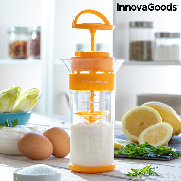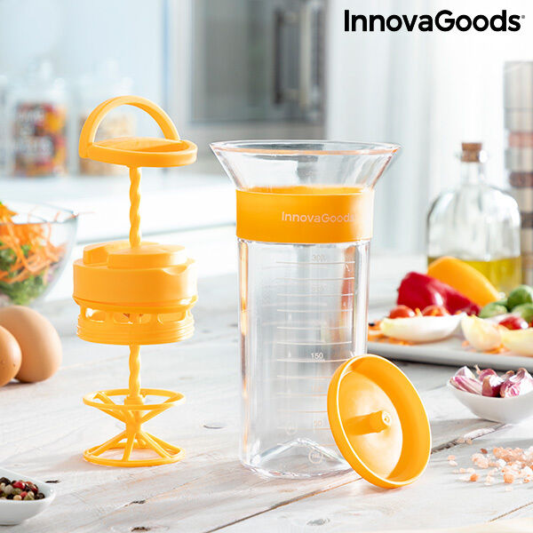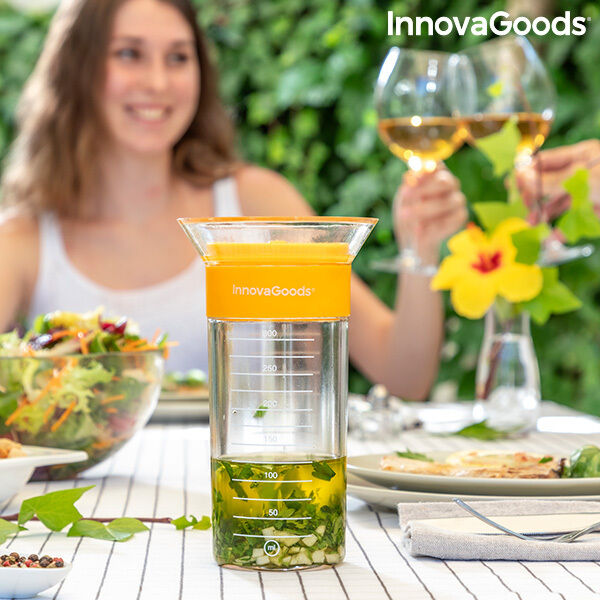 Sausmixer - Mayonaise, Vinaigrette en meer InnovaGoods is er om u te helpen koken een gemakkelijke en leuke activiteit te maken door u de beste nieuwe dingen voor uw keuken aan te bieden, zoals. Blender voor dressing en vinaigrette met recepten Dressix InnovaGoods Kitchen Cook! Bekijk de grote selectie van hoogwaardige producten die opvallen door hun functionaliteit, efficiëntie en innovatief design! Een originele blender om gemakkelijk en snel dressing en vinaigrette te maken en tegelijkertijd tijd en energie te besparen. Het heeft een capaciteit van 300 ml en het volume wordt aangegeven in zowel ml als oz. Het multifunctionele siliconen deksel kan ook als antislipbasis worden gebruikt. Het multifunctionele ontwerp maakt het ongelooflijk handig als opslagcontainer en voor het serveren van de voorbereide dressing of vinaigrette zonder dat je ander keukengerei of containers hoeft te gebruiken. Het is ongelooflijk eenvoudig met de hand te hanteren en je hoeft alleen maar de ingrediënten toe te voegen en de hendel aan de bovenkant te bewegen om de blender naar binnen te verplaatsen. Het wordt geleverd met een receptenboek voor het maken van verschillende vinaigrette-dressings. Het is de perfecte oplossing voor het maken van verschillende combinaties om te kruiden bij of om pasta, vlees, salade, vis etc. te begeleiden. Ook te gebruiken voor eieren, melk, slagroom, room etc. Doordat hij licht en compact is, neemt ongelooflijk weinig ruimte in beslag in de keuken en is ook gemakkelijk schoon te maken omdat hij uit elkaar kan worden gehaald. Specificaties: - Materiaal: - PS - TPR - PP - BPA-vrij - Kleur: - Oranje - Transparant - Innovatief en functioneel ontwerp: 2-in-1 - Type: Handmatig keukengerei - Multifunctioneel: - Blender voor dressing en vinaigrette - Serveercontainer - Inclusief: Receptenboek - Capaciteit: 300 ml - Volume-indicator: ml / oz - Multifunctioneel deksel: siliconen - Antislipbasis: vaste greep - Comfortabel en gebruiksvriendelijk: bespaar tijd en energie - Verwijderbaar: gemakkelijk schoon te maken - Compact: lichtgewicht en comfortabel - Gemakkelijk te vervoeren en op te bergen: neemt weinig in beslag - hoofdgebruik: dressings en vinaigrette - secundair gebruik: eieren, melk, slagroom, soep ... - Ca. afmetingen: Ø10 x 18,5 cm Verpakking, handleiding en recepten in 24 talen: Engels, Frans, Spaans, Duits, Italiaans, Portugees, Nederlands, Pools, Hongaars, Roemeens, Deens, Zweeds, Fins, Litouws, Noors, Sloveens, Grieks, Tsjechisch, Bulgaars, Kroatisch, Slowaaks , Ests, Russisch, Lets Video VIDEO