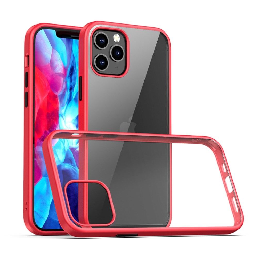 IPAKY Clear PC Back + TPU Edge Combo Beschermhoes voor iPhone 12 Pro - Rood / Zwart