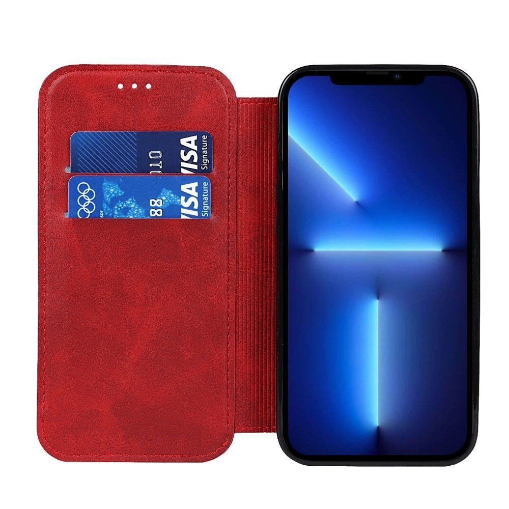 Jazz-serie PU-leer + TPU magnetische Stand met kaarthouder voor iPhone 13 Pro - rood
