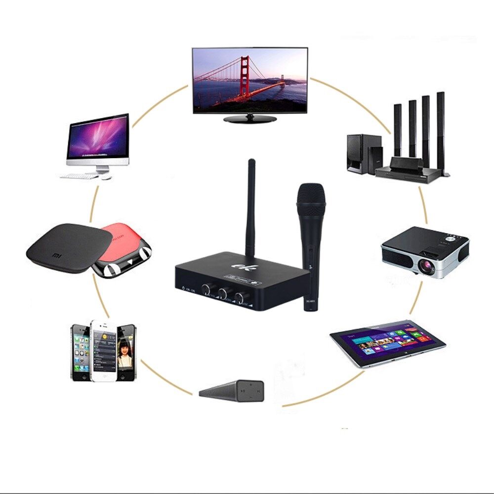 K2 draadloze mini familie home karaoke echo systeem zangmachine box karaoke spelers voor Android TV box, Android TV/Windows PC, Smart , inclusief 2 stuks draadloze microfoon.