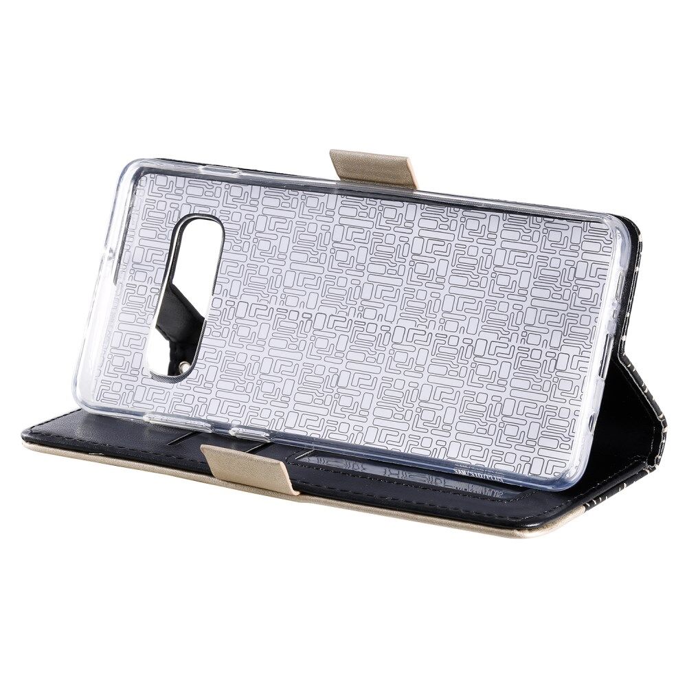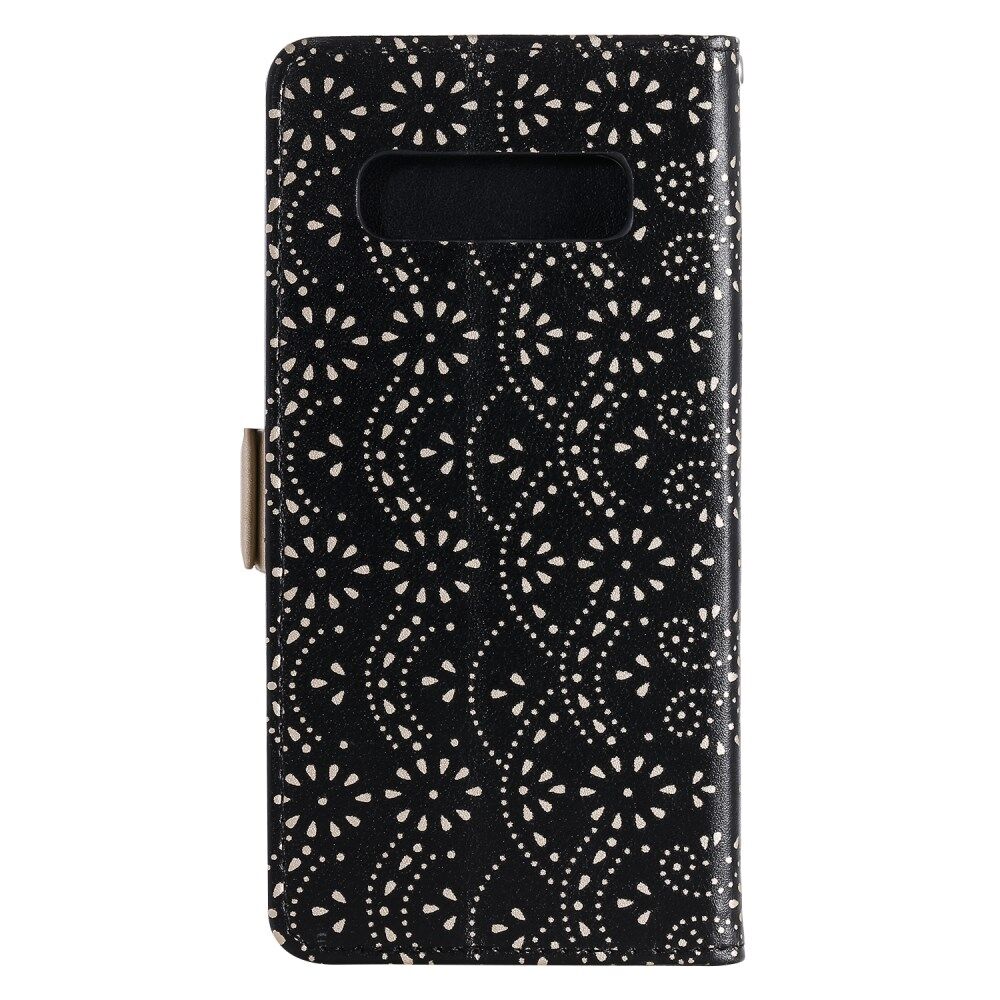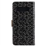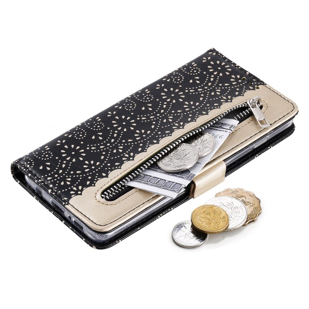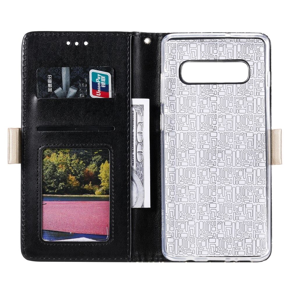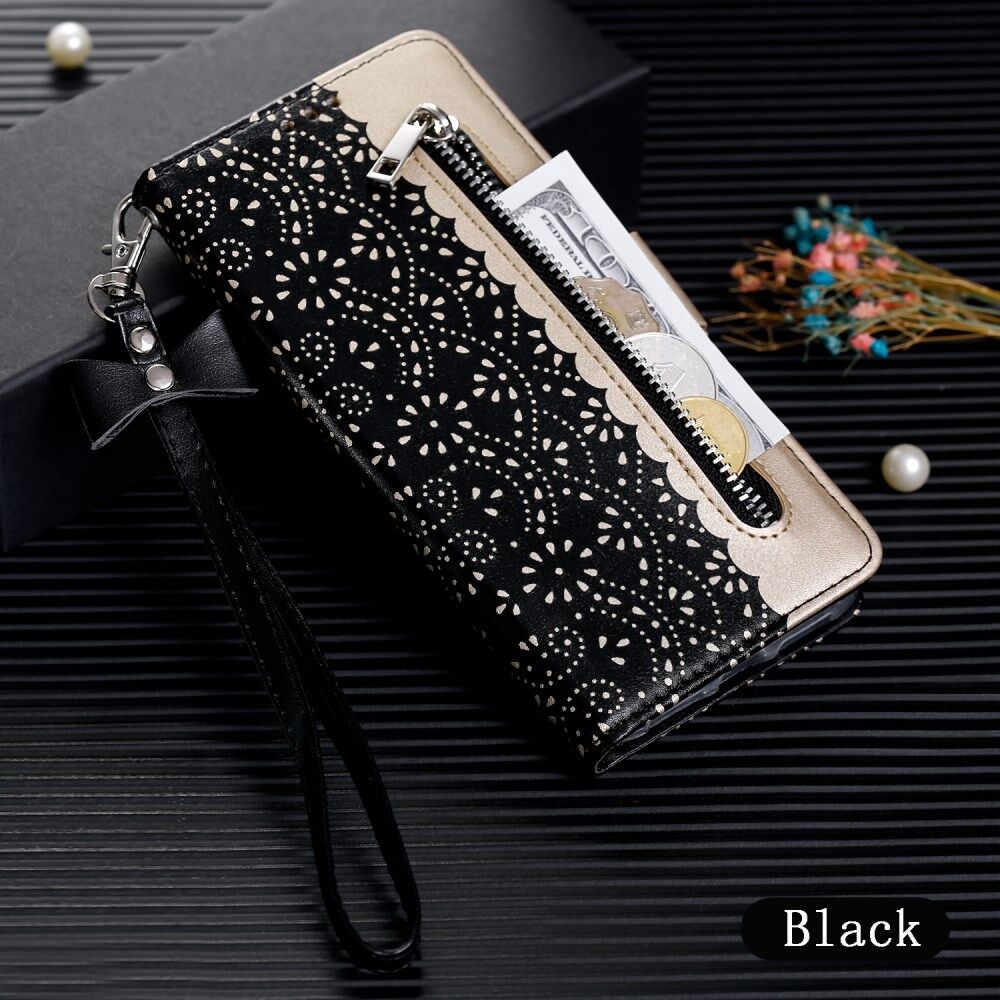 Leren portemonnee zak met bloemenpatroon en ritssluiting voor Samsung Galaxy S10 Plus - zwart