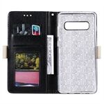Kant bloemenpatroon Leren zak met ritsvak met striklint voor Samsung Galaxy S10 Plus