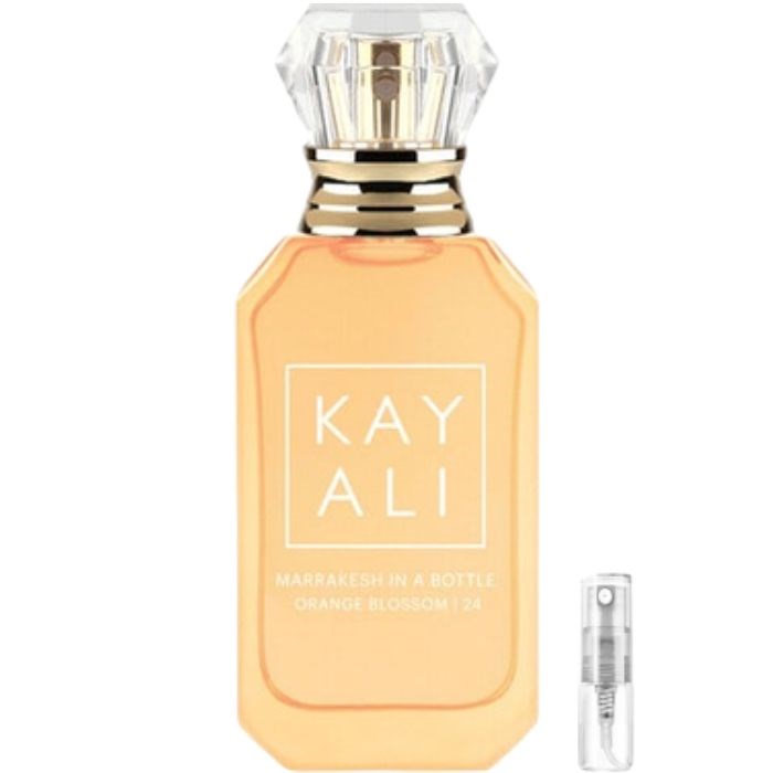 Marrakesh in a Bottle Orange Blossom | 24 Eau de Parfum van Kayali Fragrances is een amber bloemige geur voor vrouwen. Deze nieuwe geur werd gelanceerd in 2024. Topnoten: Sinaasappelbloesem, roze peper en bergamot. Hartnoten: Neroli en Turkse roos. Basisnoot: Ceder.
