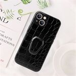 Kickstand-ontwerp PU-leer gecoate telefoonhoes Shell met ingebouwde metalen plaat voor iPhone 13 - krokodiltextuur/zwart