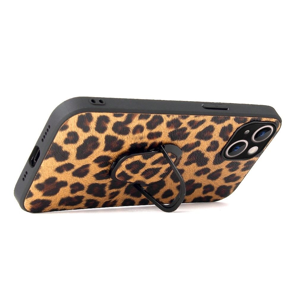 Kickstand Design PU lederen telefoonhoes Shell met ingebouwde metalen plaat voor iPhone 13 6.1 inch - Krokodiltextuur/zwart