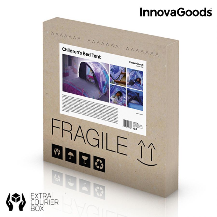 De bedtent heeft binnenvakken voor het opbergen van het boek, dat voor het slapengaan wordt voorgelezen of voor het favoriete speeltje.