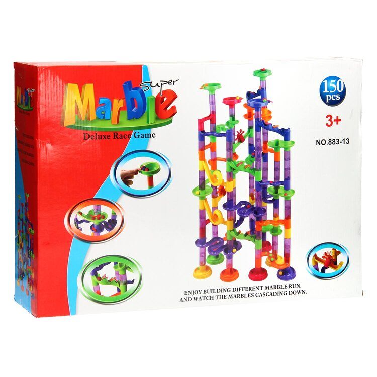 Creëer een spectaculaire knikkerbaan met deze megaset. Bouw de spannende baan van het voorbeeld of laat je fantasie de vrije loop en creëer je eigen ontwerp. Met de 150 verschillende onderdelen creëer je eindeloos veel verschillende banen. Functies zoals snelle spiralen, loops, ratelende wendingen en transparante glitterbuizen maken van elke baan een avontuur. De megaset is gemaakt van robuust kunststof. Inclusief geïllustreerde instructies en ballen.