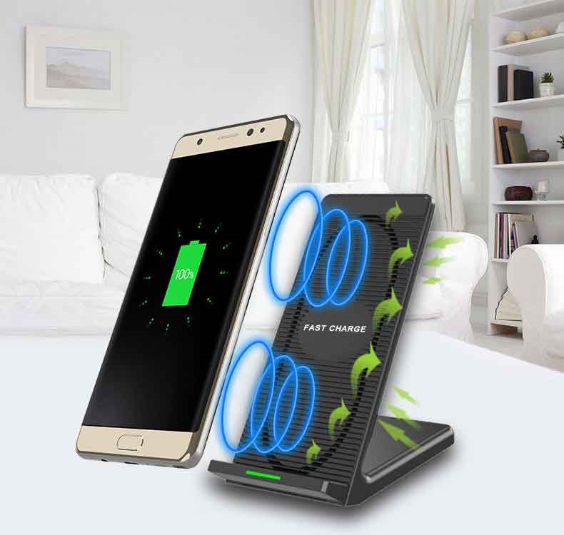 De draadloze Qi-oplaadstandaard ondersteunt opladen voor Qi-compatibele smartphones en snelladen voor smartphones die snelladen ondersteunen.