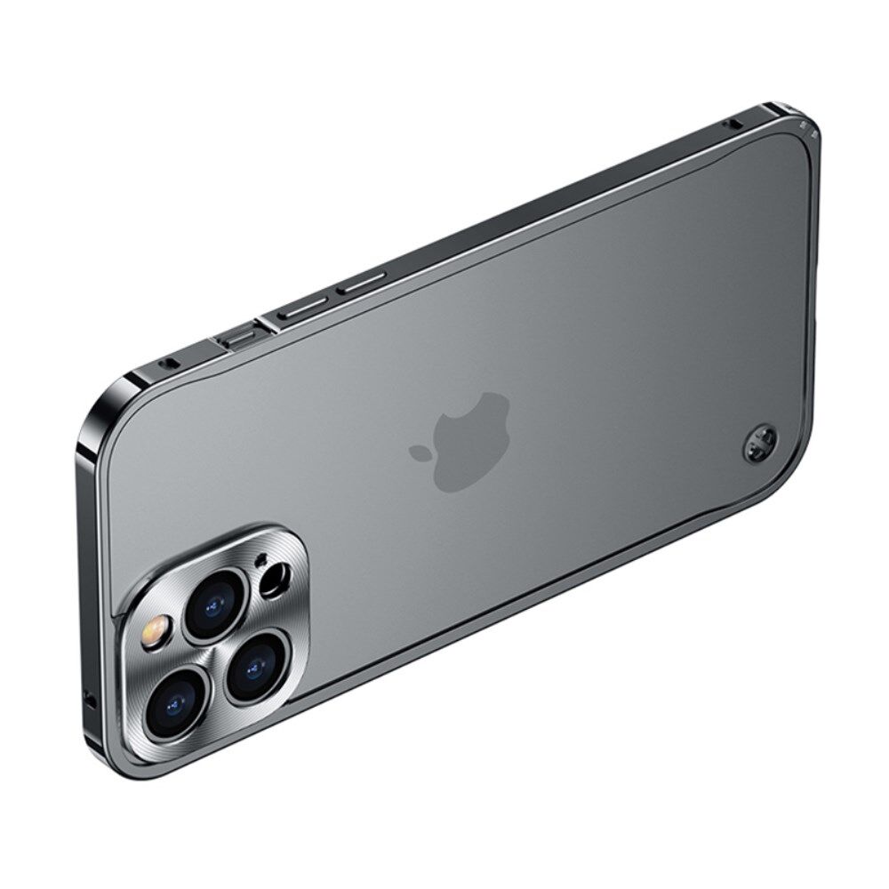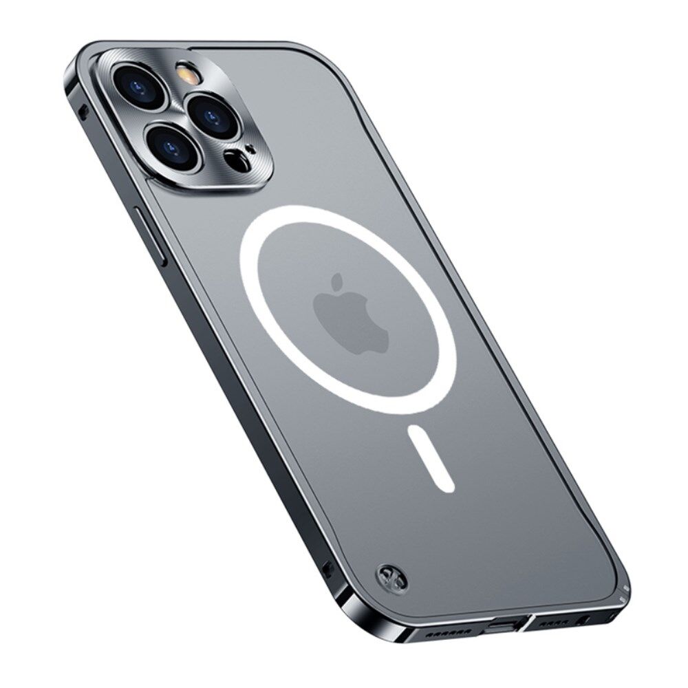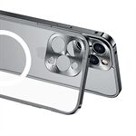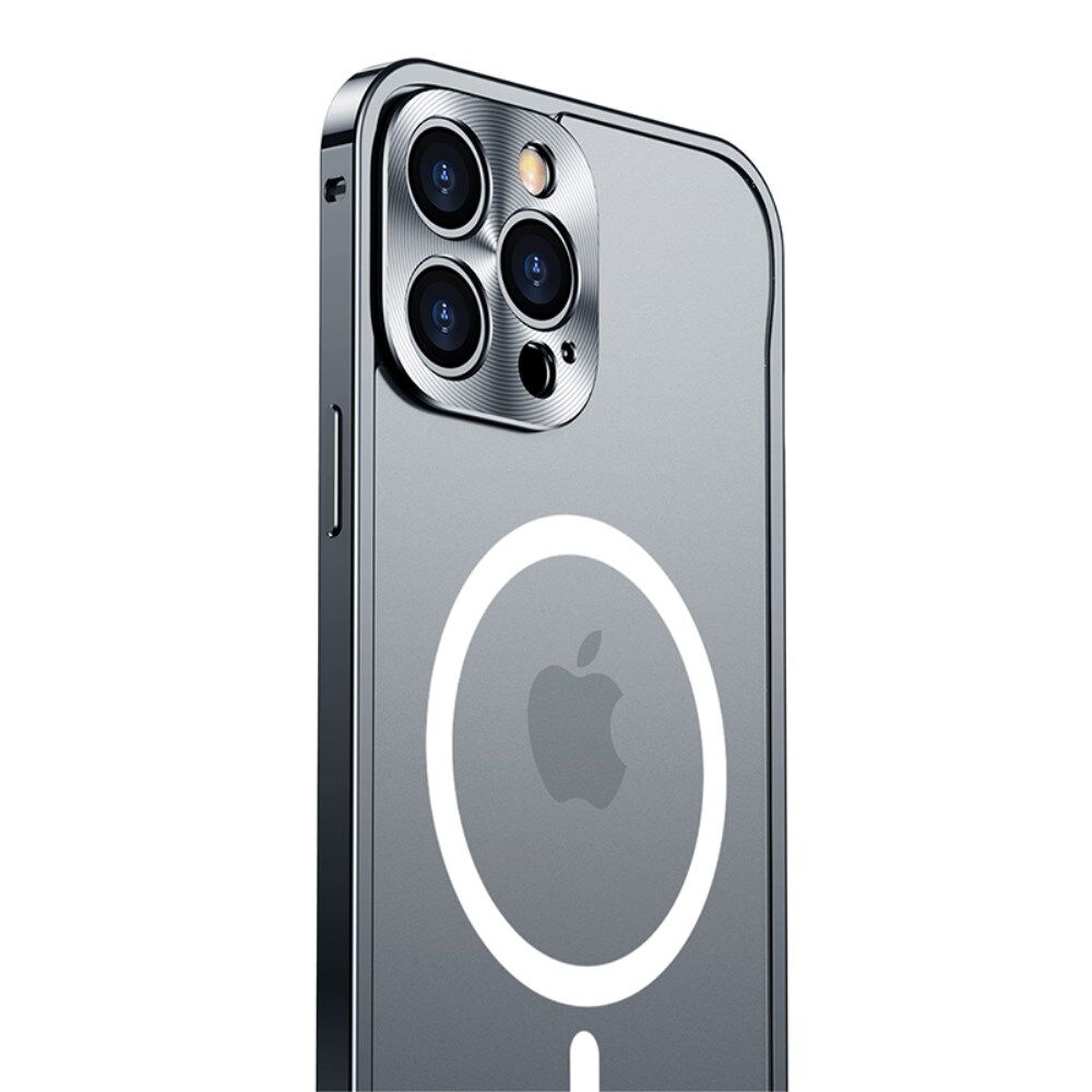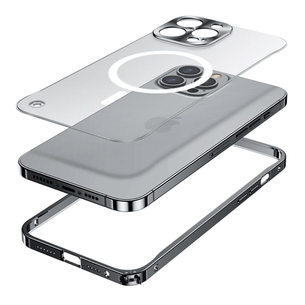 Krasbestendig slank telefoonhoesje Gehard glas + metalen framebeschermer Mat transparant krasbestendig hoesje met magnetische draadloze oplaadfunctie voor iPhone 12 Pro - zwart