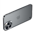 Krasbestendige slanke telefoonhoes van gehard glas + metalen framebeschermer Mat transparante krasbestendige hoes met magnetische draadloze oplaadfunctie voor iPhone 12 Pro - blauw