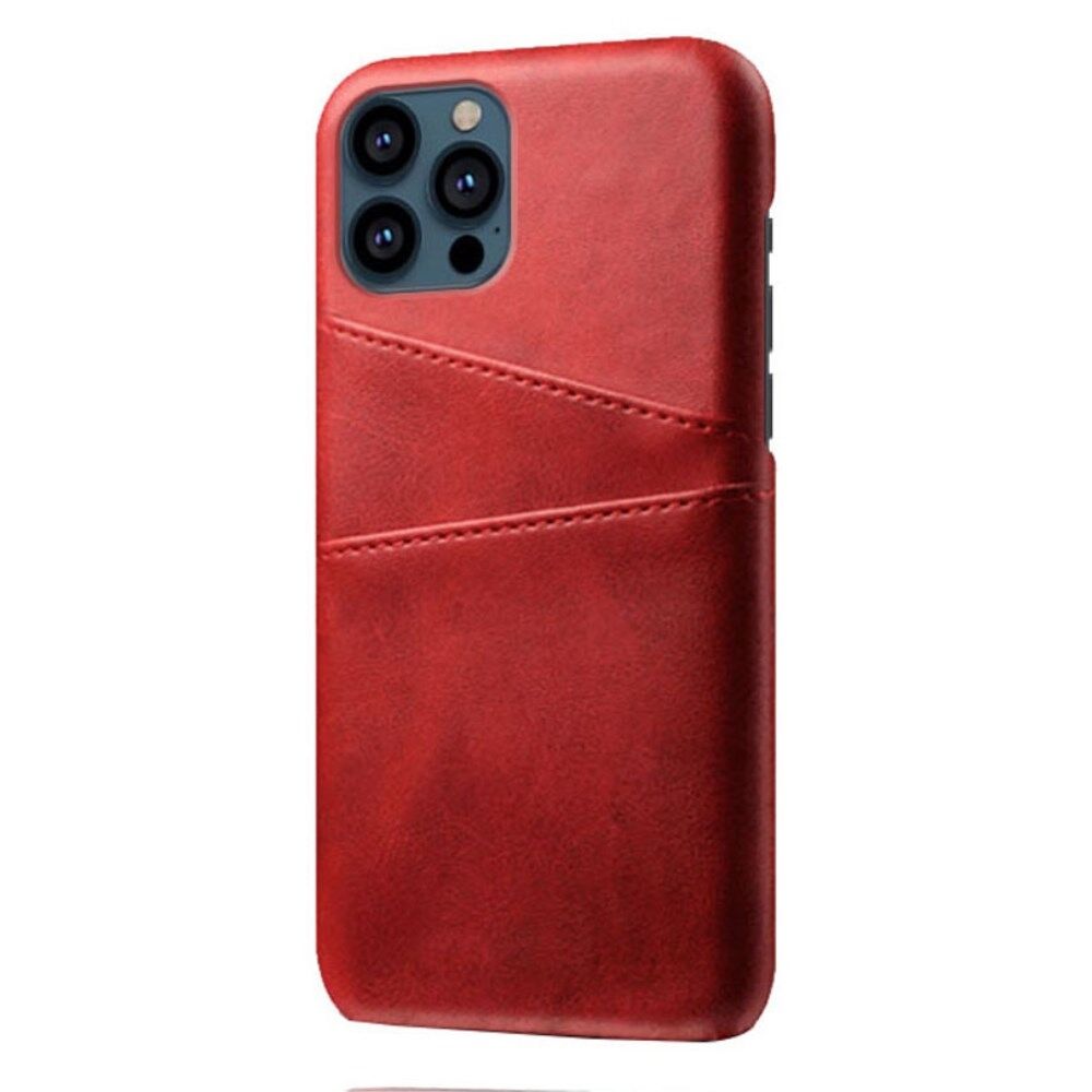 KSQ Leather Hardcover voor iPhone 13 Pro met kaarthouders - Rood