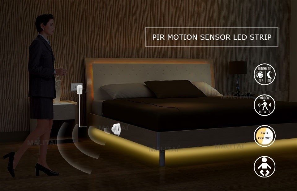 Smart en functionele led-lichtstrip met bewegingssensor, die wordt aangesloten op het stopcontact.