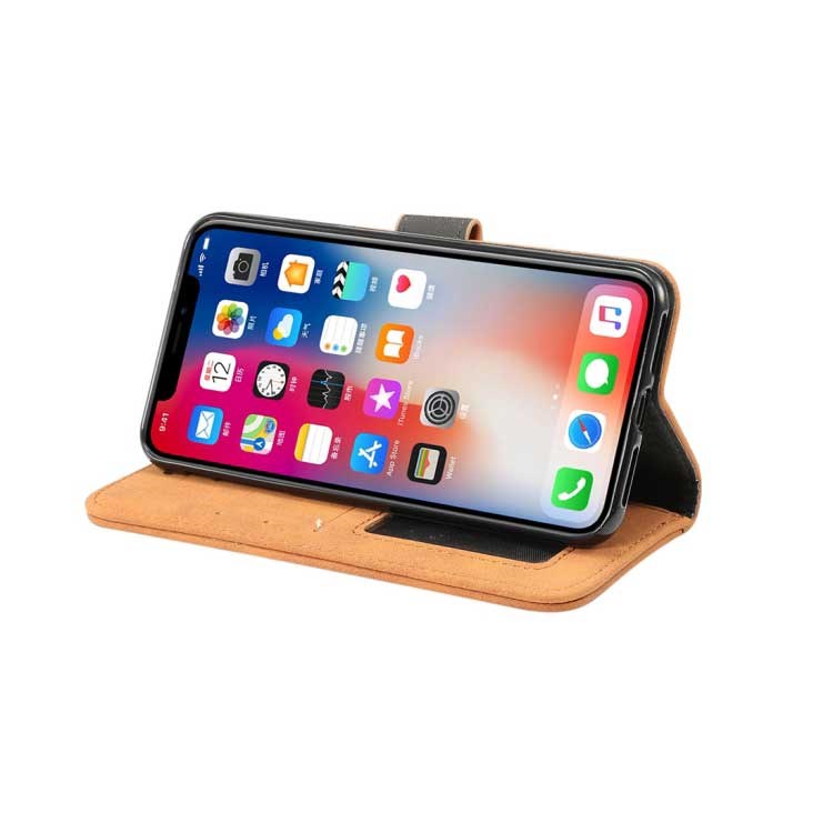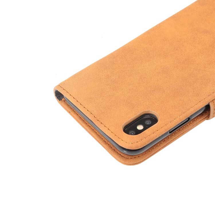 Leren hoesje in suède-look voor iPhone XS Max - met kaarthouder - Bruin
