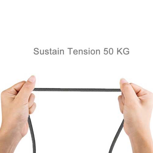 Het is een stabiele en duurzame kabel van gevlochten PVC die gegevens oplaadt en synchroniseert met 3A.