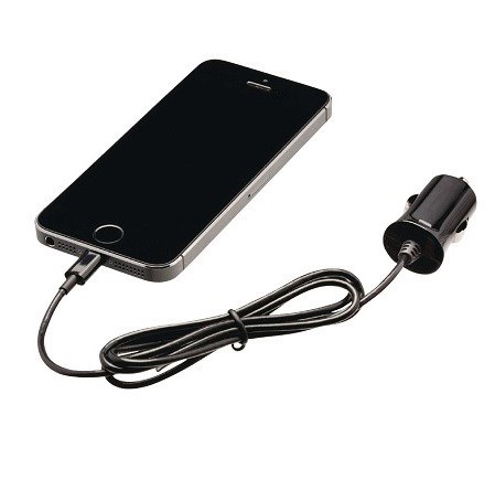 Praktische Lightning-oplader voor in de auto. Laad je smartphone gemakkelijk en snel op.