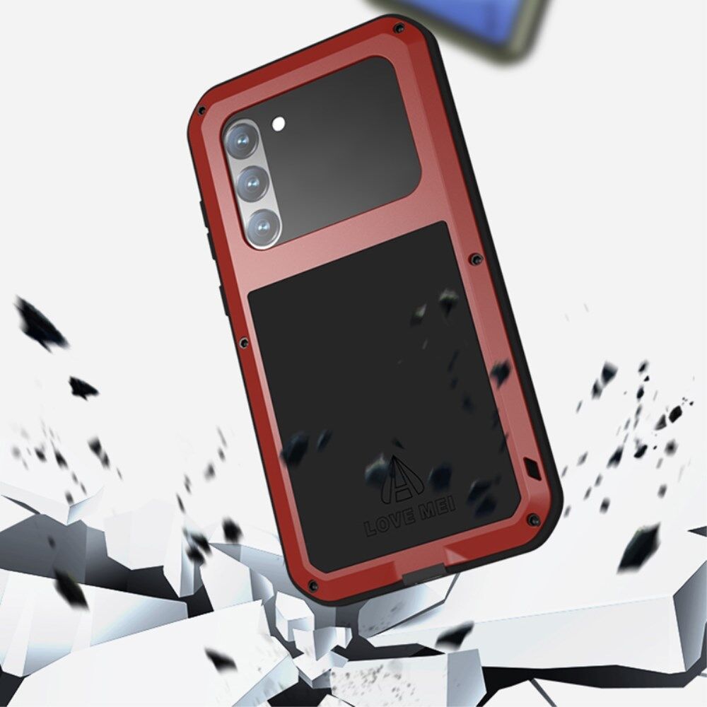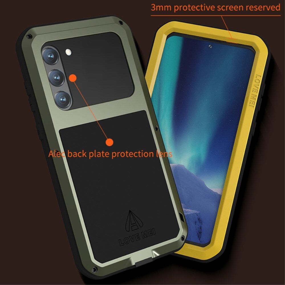 Love MEI voor Samsung Galaxy S23+ schokbestendig telefoonhoesje siliconen + metalen valbestendige smartphonehoes met gehard glasfilm