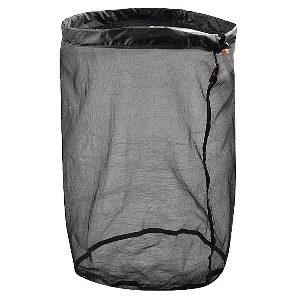 LUCKSTONE Maat XXL Lace-up Mesh Wasserij Opbergtas Afvalzak Multifunctioneel visnet Gemakkelijk op te vouwen voor op reis Kamperen Wandelen - Zwart