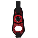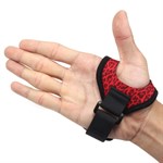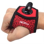 De band is gemaakt van zacht neopreen en is rood met een luipaardpatroon.
