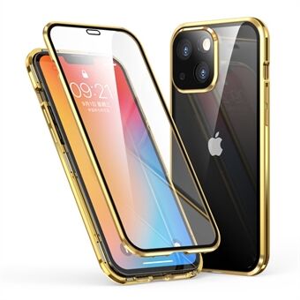LUPHIE Magnetische iPhone 13 Cover met Glazen Voor- & Achterkant - Goud