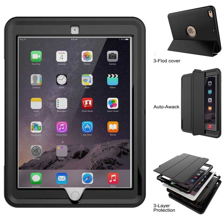 Magnetische 3-voudige Sleep / Wake-up Cover voor iPad 9.7 "(2018) / iPad 9.7" (2017) - Zwart