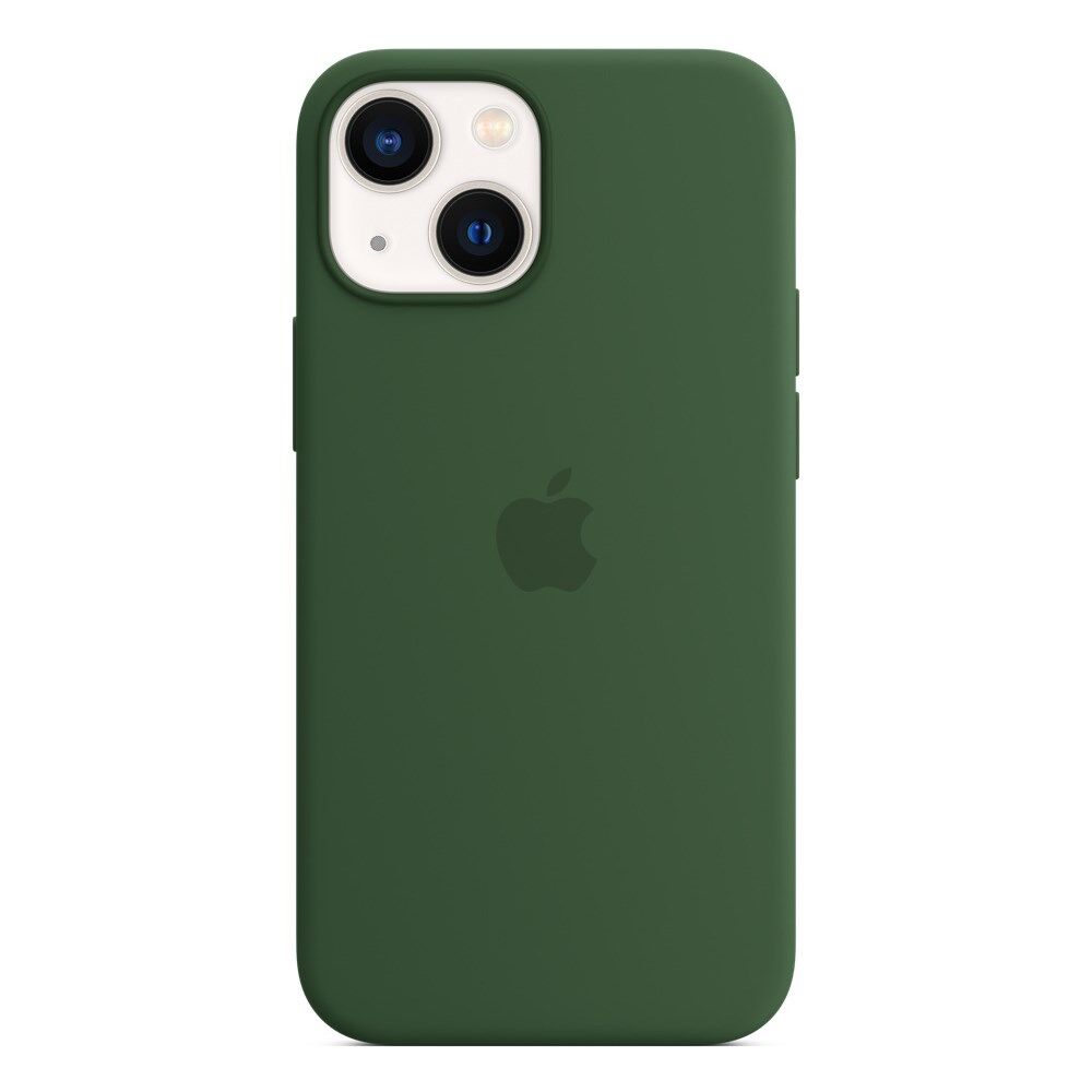Magnetische absorptie mobiele telefoonbeschermer Vloeibare siliconen telefoonhoes compatibel met MagSafe [Inductie Popover] voor iPhone 13 mini 5.4 inch - Zwartachtig groen