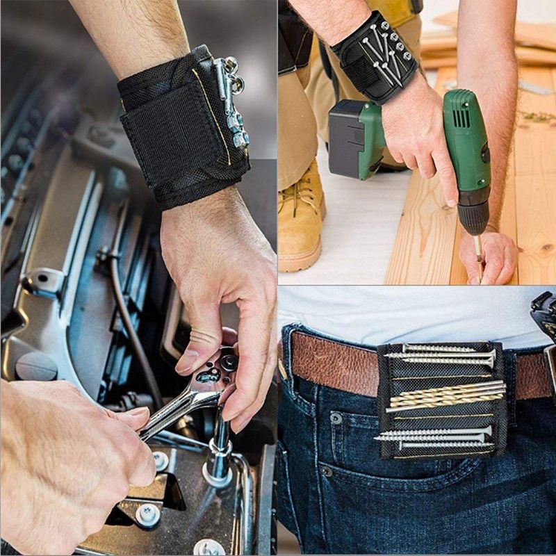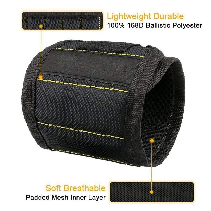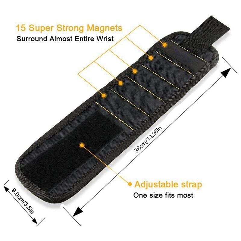 Bespaar tijd en maak het werk gemakkelijker met de magnetische armband. De armband is uitgerust met 10 krachtige magneten die gereedschap, spijkers, schroeven, bouten, bits, moersleutels, enz.