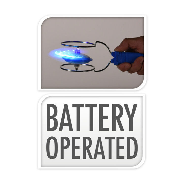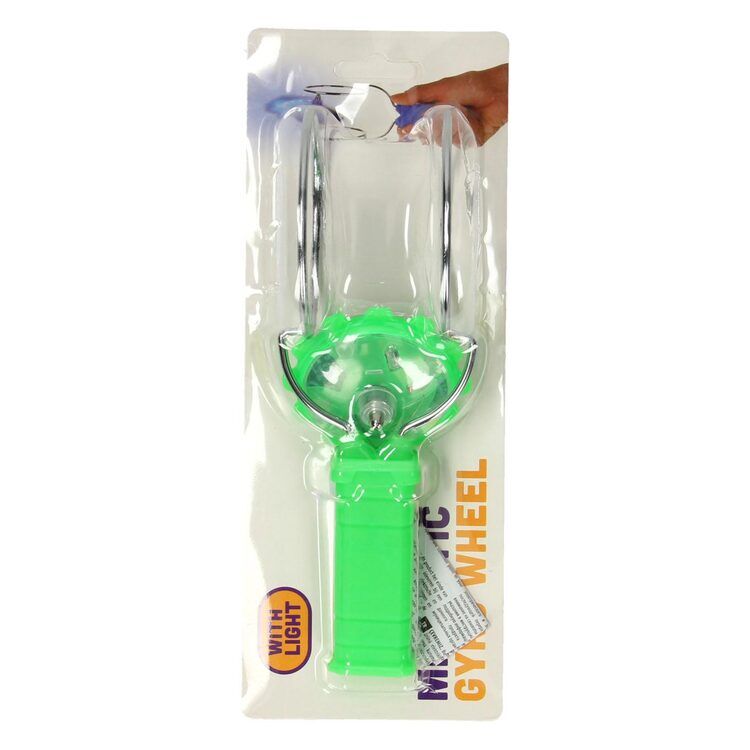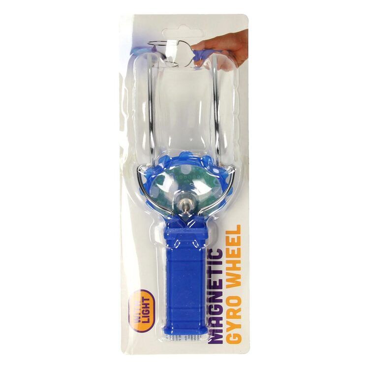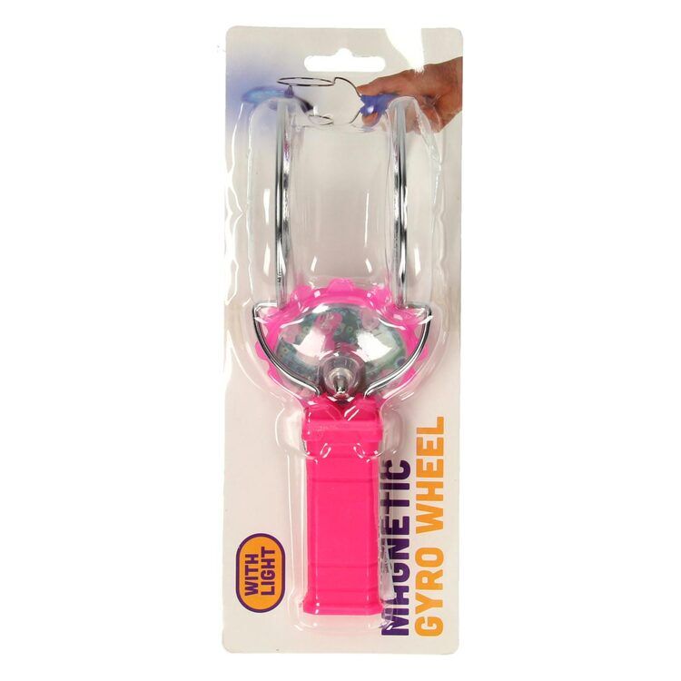 Magnetisch Fidget Gyrowiel met licht. Draai de bovenkant door het wiel en de bovenkant blijft plakken door de magnetische functie. Er zijn 4 kleuren: blauw, groen, oranje en roze.