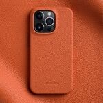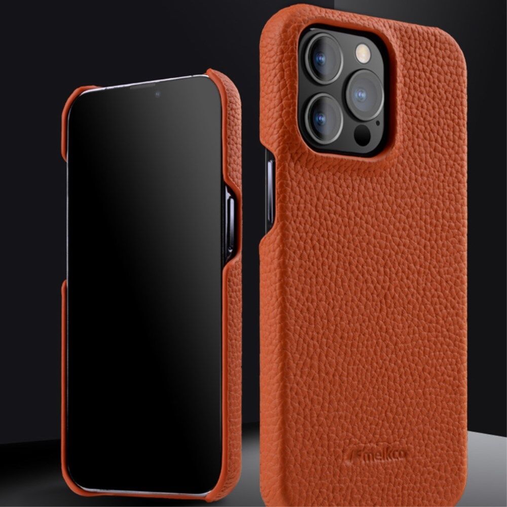 MELKCO voor iPhone 13 Pro 6,1 inch echt rundleer + pc-achterkant schokbestendig telefoonhoesje - oranje