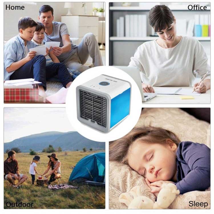 De luchtkoeler is eenvoudig in gebruik en door iedereen te bedienen. Vul de kamer met water en sluit de stroom aan. Dan werkt hij net zoals de Arctic Air kan worden aangesloten op gewone stopcontacten met een telefoonadapter etc. Vgl. , maar kan ook via een USB-poort van stroom worden voorzien.