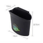 De mini-afvalbak meet 22,5 x 18 x cm en is gemaakt van zwart ABS-kunststof, dat gemakkelijk schoon te maken is.