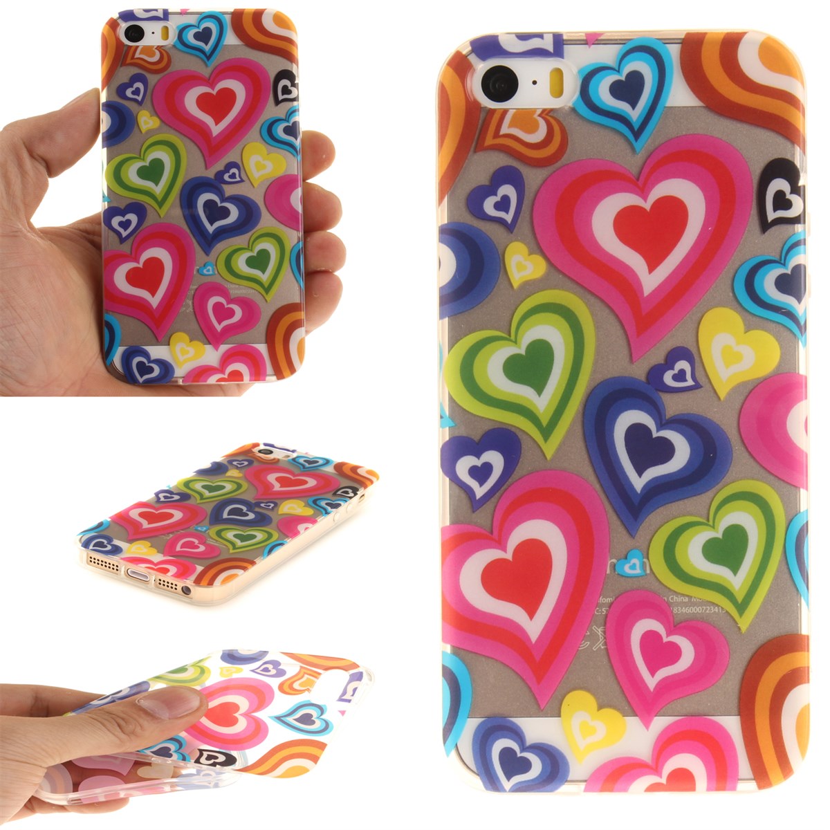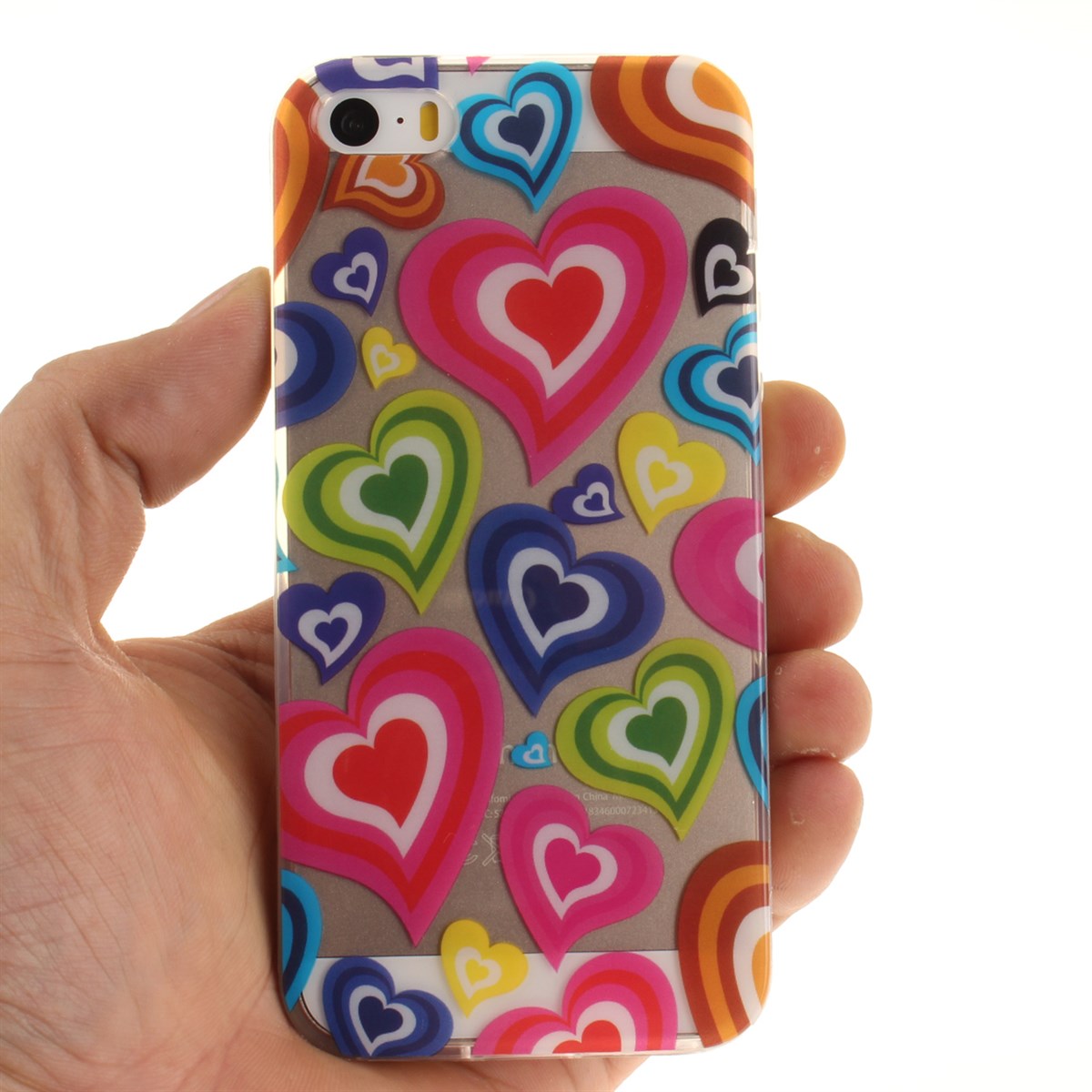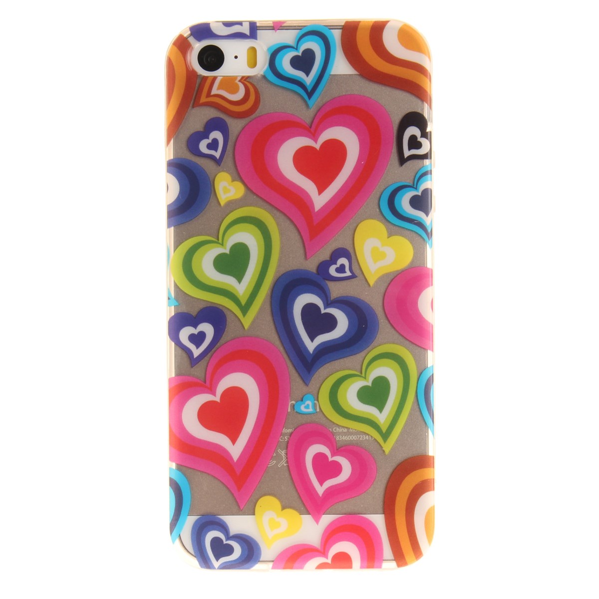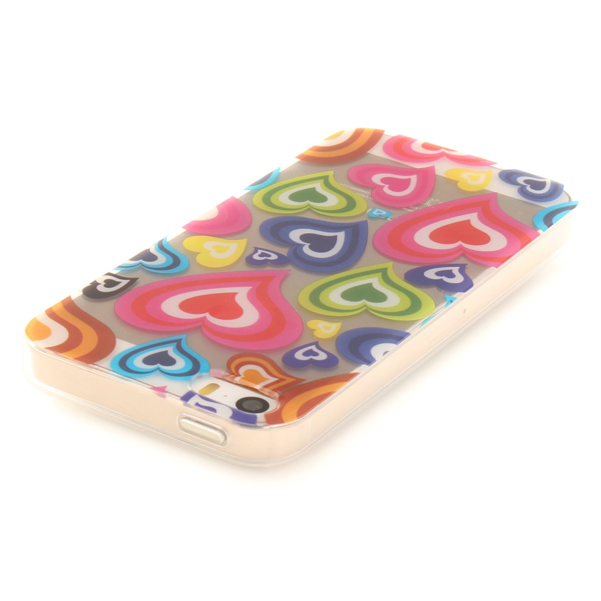 Modern art siliconen hoesje voor iPhone 5 / iPhone 5S / iPhone SE 2013 - Hartkleuren