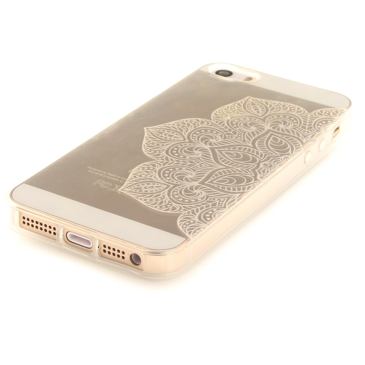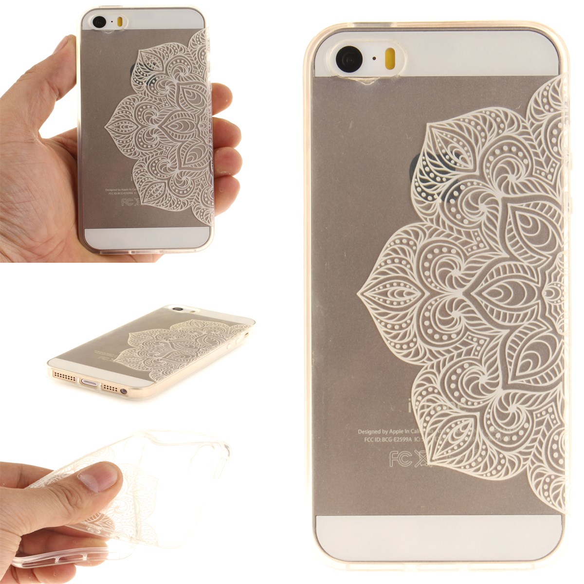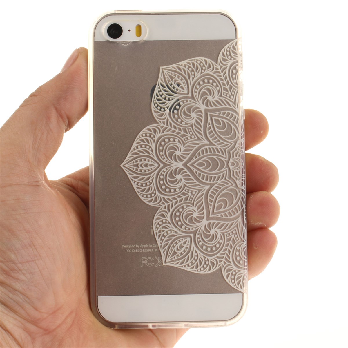 Modern art siliconen hoesje voor iPhone 5 / iPhone 5S / iPhone SE 2013 - Witte Bloem