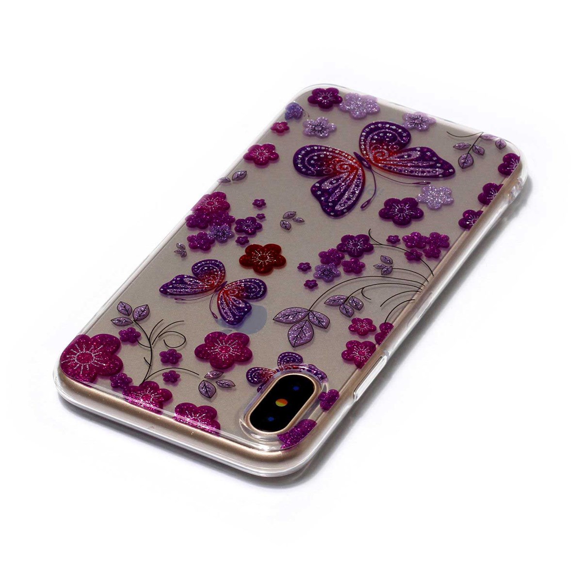 Mooie Design Cover in zacht TPU-plastic voor iPhone X / iPhone Xs - Purple Butterflies